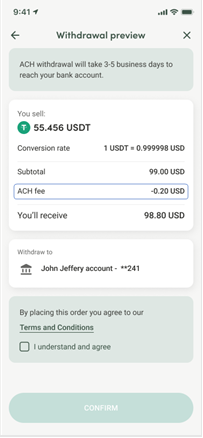 When selling digital assets in RockWallet using ACH electronic bank transfer, a small processing fee applies.